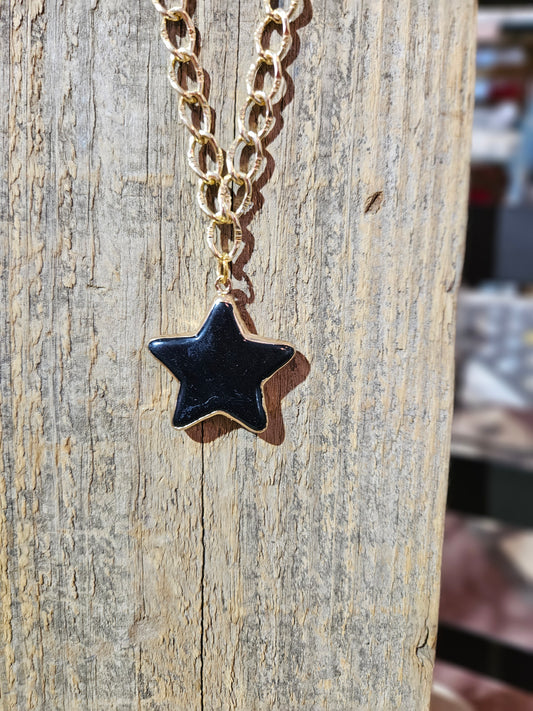 Gold Chunky Chain Necklace w/ Black Magnesite Star