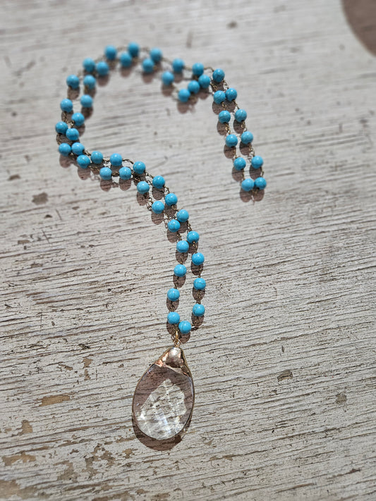 Turquoise Magnesite & Crystal Teardrop Pendant Necklace
