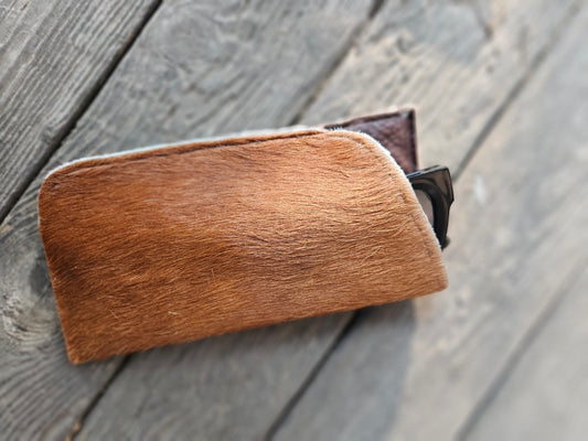 Brown Ombre Cowhide Card Holder with Natural Scar Lines