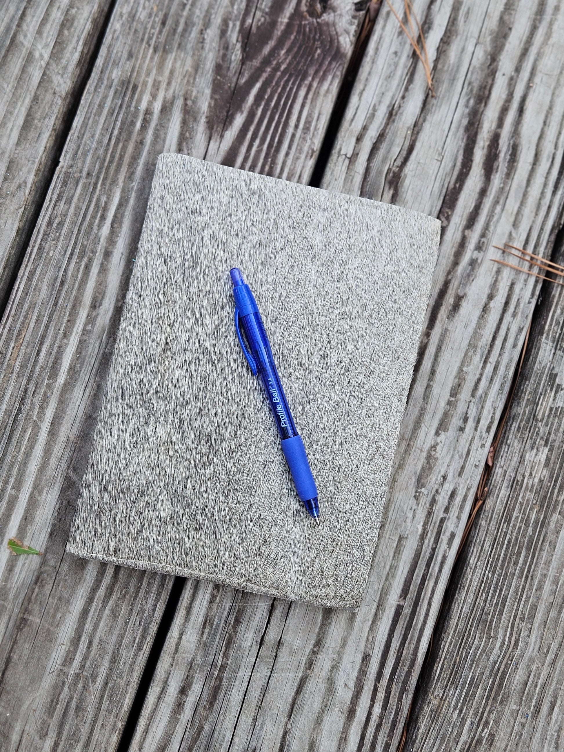 These genuine cowhide and leather journals are perfect for jotting down thoughts, prayers, or to-do lists. Each one comes with an A5 journal tucked inside a sturdy cover measuring 6.5” x 8.75” when closed. Beautifully crafted and made to last — because your words deserve something special. This one is made with Gray Interior Leather Flaps