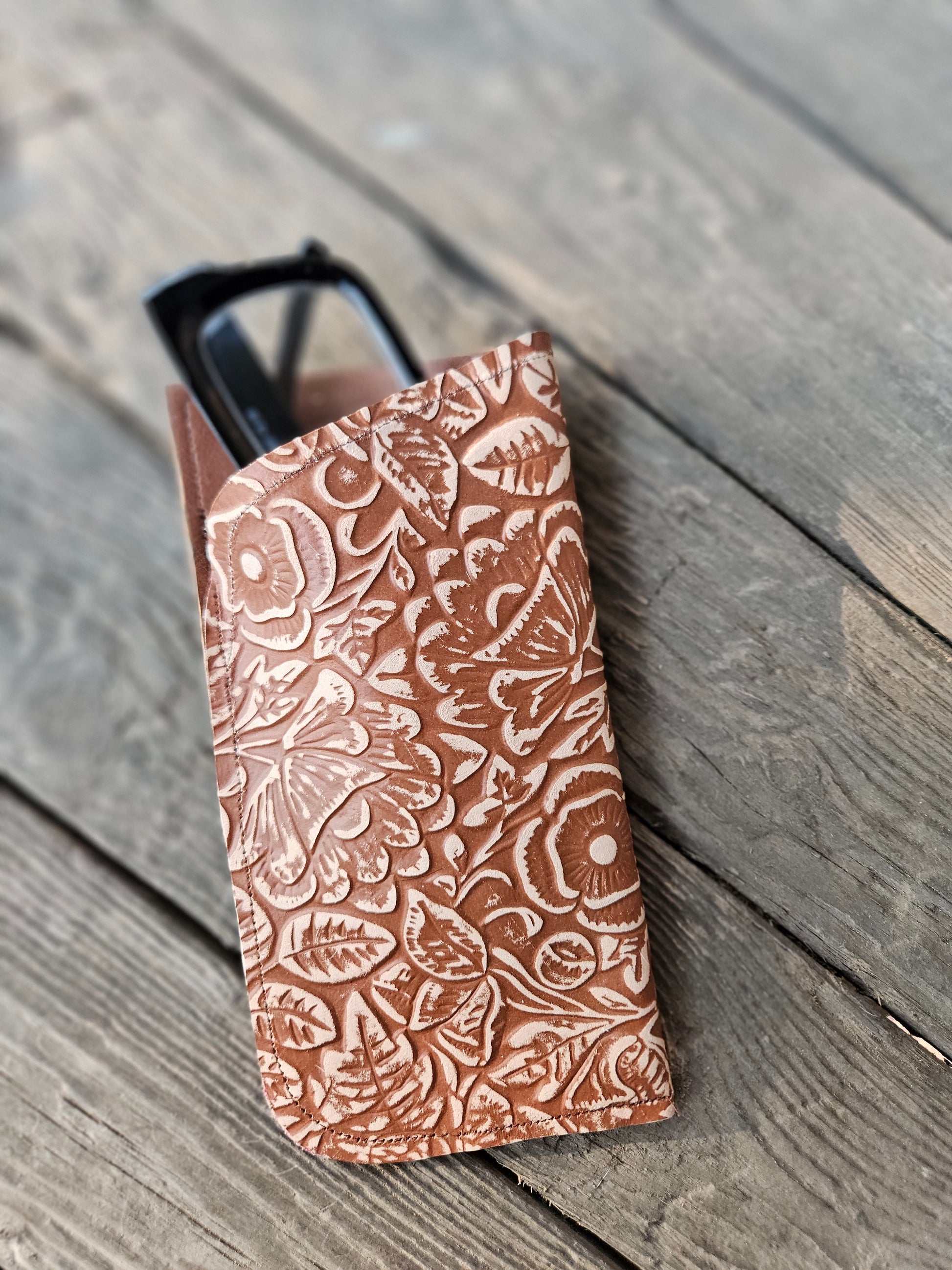 Brown and Tan Floral Embossed Glasses Case
